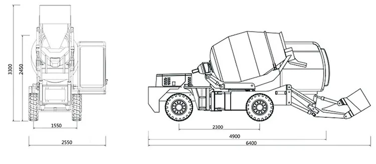The the Geometric Volume of Mixing Drum is 2.3 m³. Concrete output is 1.5 m³ per Batch. The wide cabin windscreen and the specially designed loading arms dramatically improve visibility during casting operations. This high-productivity self loading concrete mixer is price-worth, easy to use, features excellent daily performance (it may reach even 48 m³ of concrete) and reliability. As a result of these characteristics, it is the ideal solution for rental purposes and for maintenance operations.