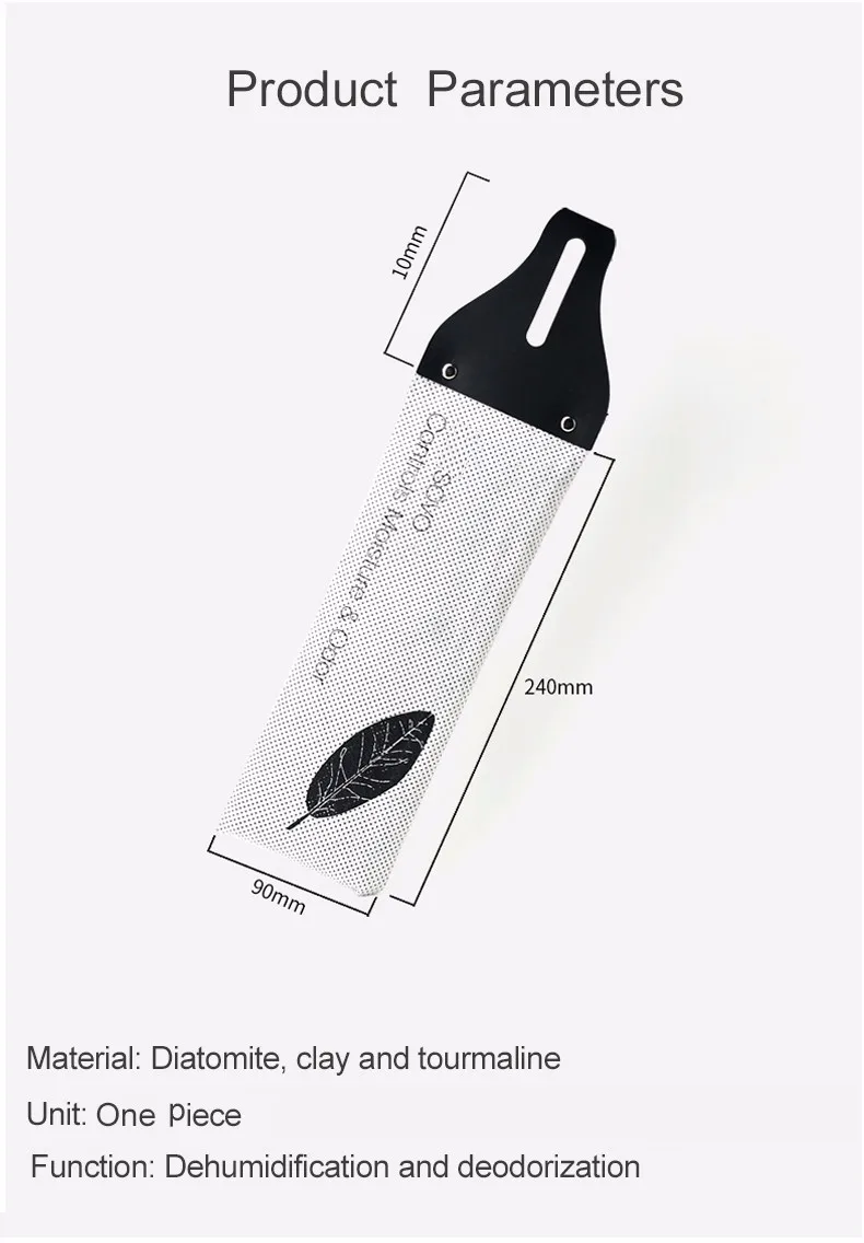 Diatomite hanging piece also absorbs free substance like formaldehyde, TVOC, hydrogen sulfide. It meets the use requirement of common hanger and drawer.