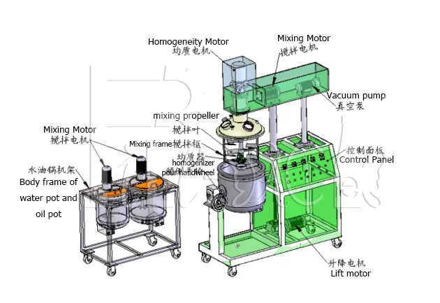 The main pot is composed of a homogeneous stirring pot, a homogenizing mechanism, a stirring mechanism and so on.