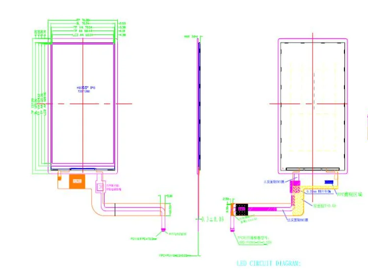 Outline Dimension | 70.94(H) x129.56(V)x1.65(T)mm | Drive IC | ILI9881 |