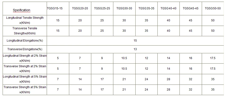 PP Uniaxial geogrid Product Technical Parameter