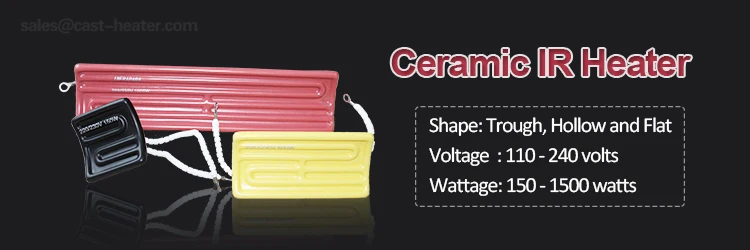 Infrared ceramic heater are widely used in pre-heating of plastic sheets for vacuum forming & thermoforming, drying paints, lacquer & varnish curing, drying printing inks, drying textiles, activating adhesives, removing surface water from objects or moisture removal from fabric and paper, animal husbandry and rearing.The ceramic IR heaters are highly efficient.Ceramic infrared heater offers precise targeting and control with minimal peripheral heat. It is possible to apply heat only where and when it is required.