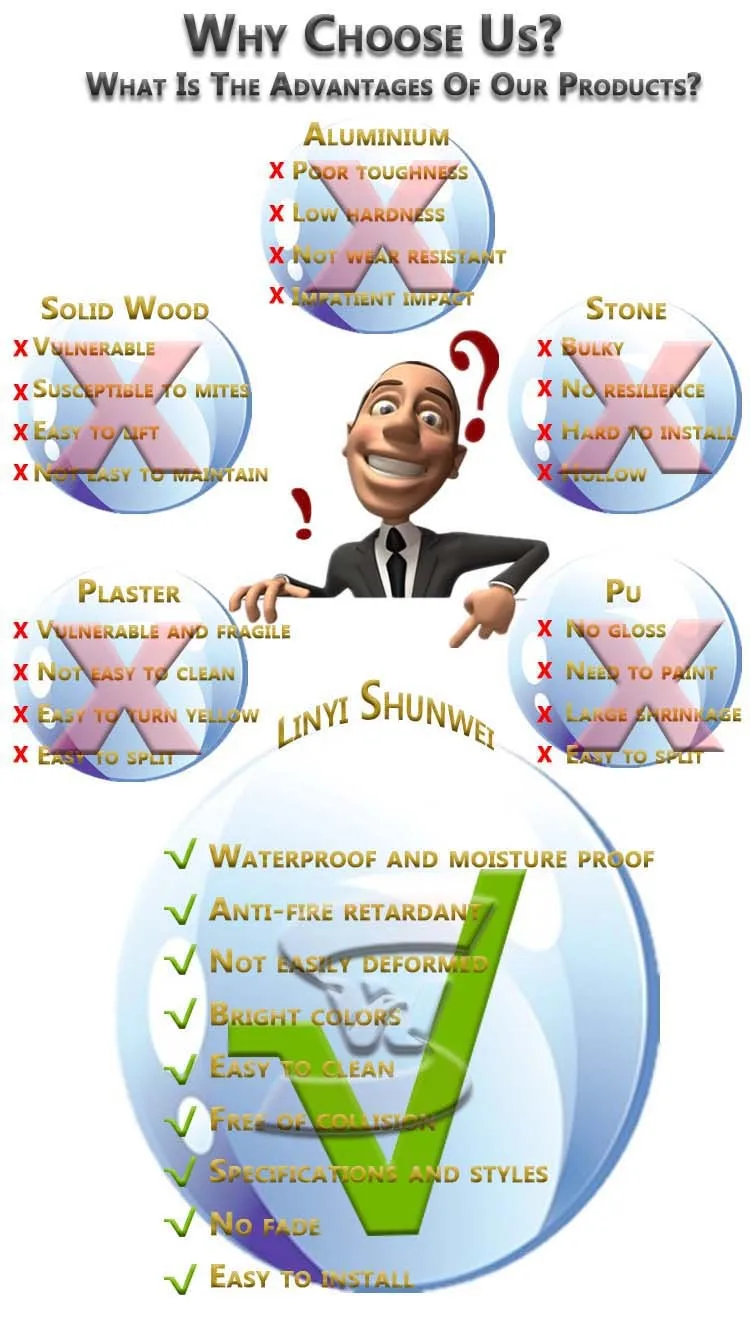 Linyi Shuwnei International Trade Co.,Ltd is an integrated Company for 20 years in China, which is fully integrated R & D, design and production resources and mainly sales PS foam line, PS decorative lines, PVC decorative lines, PVC flame retardant line, UV board series, Technology stone lines, decorative painting, Rome column, etc.. The main service objects are calligraphy and painting shop, phase Museum, wedding photography, decoration companies, tooling companies and other regional agents, and suitable for hotels, bars, KTV, tea shops, stores, corporate image and other decorative works.