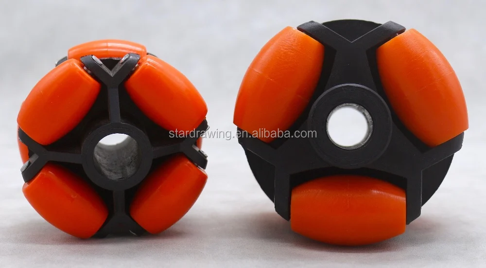 1)Our Omni-Directional Wheels' roller can be manufactured from High strength Nylon/Glass filled Nylon/Polyurethane/Rubber/Electricity Conductive materials.