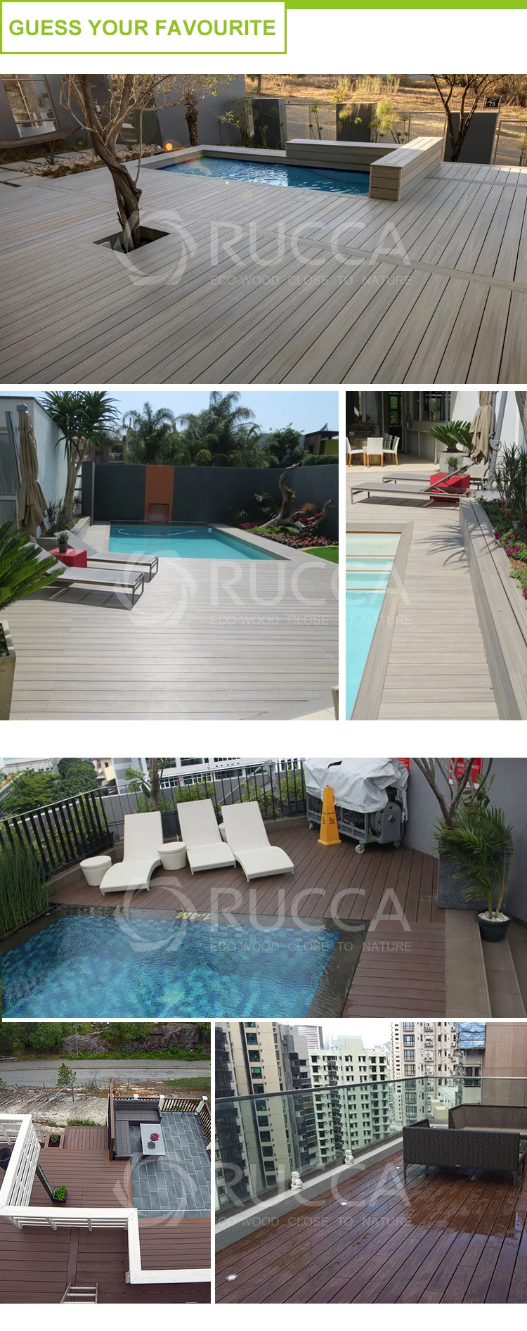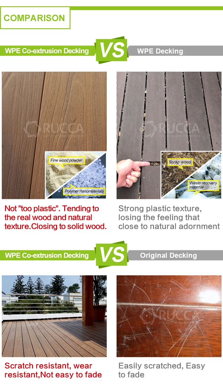 Material | 30% environmental plastic materials(Grade A HDPE andnew PP) 60% natural fiber (wood powder, bamboo powder, etc) 10% chemical additives. (Anti-UV agent, Anti-oxidation agent,stabilizers,colorants, anti fungus agent, coupling agent, reinforcing agent, lubricants.) |