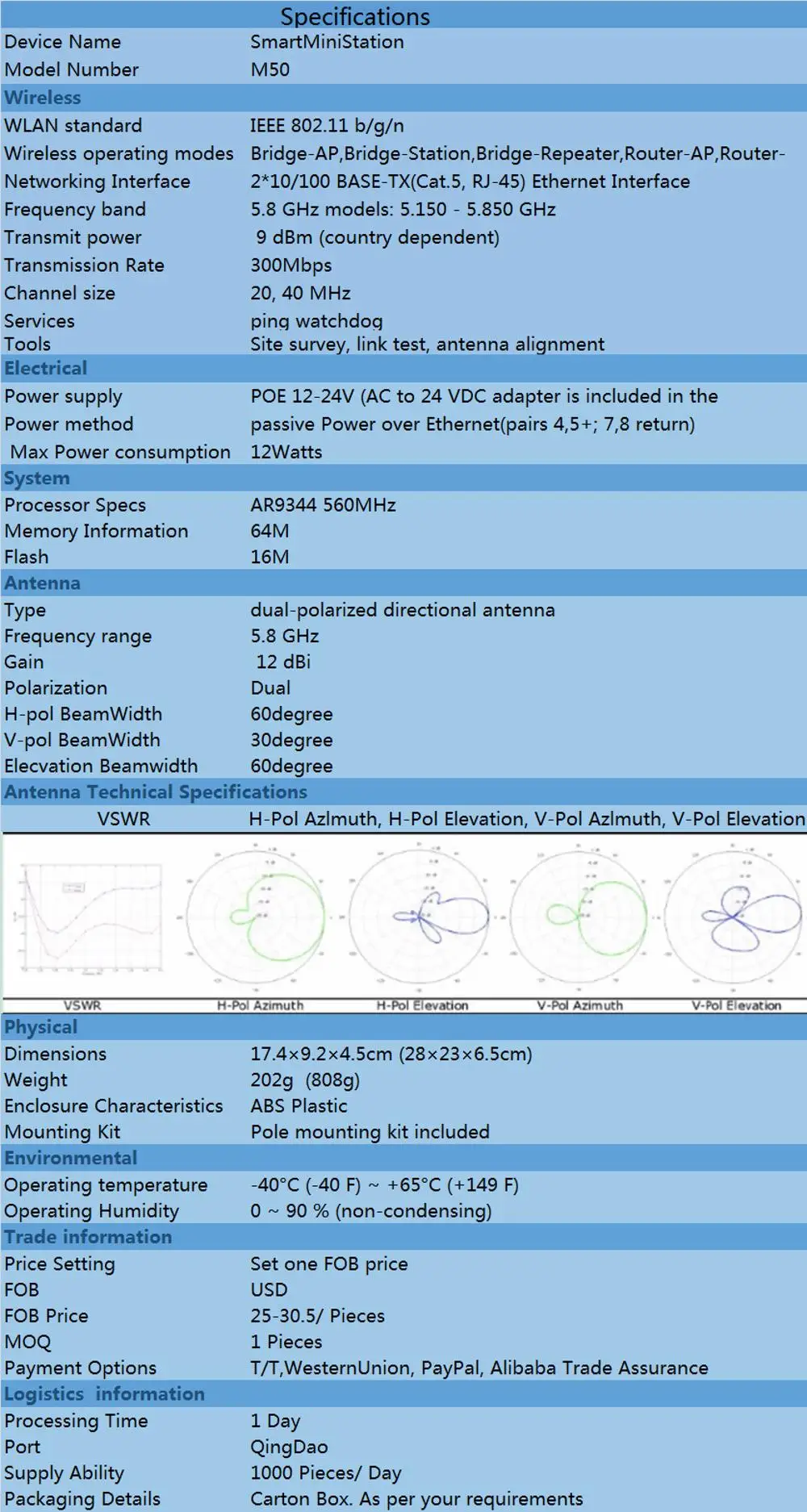 · Chipset: AR9344 · Integration PHY
