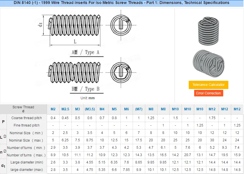 Product Name: | DIN 8140 Stainless Steel Wire Thread Inserts/ Screw Insert |