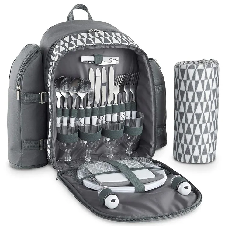 600D polyester camping picnic cooler outdoor insulated picnic bag backpack for 4 person