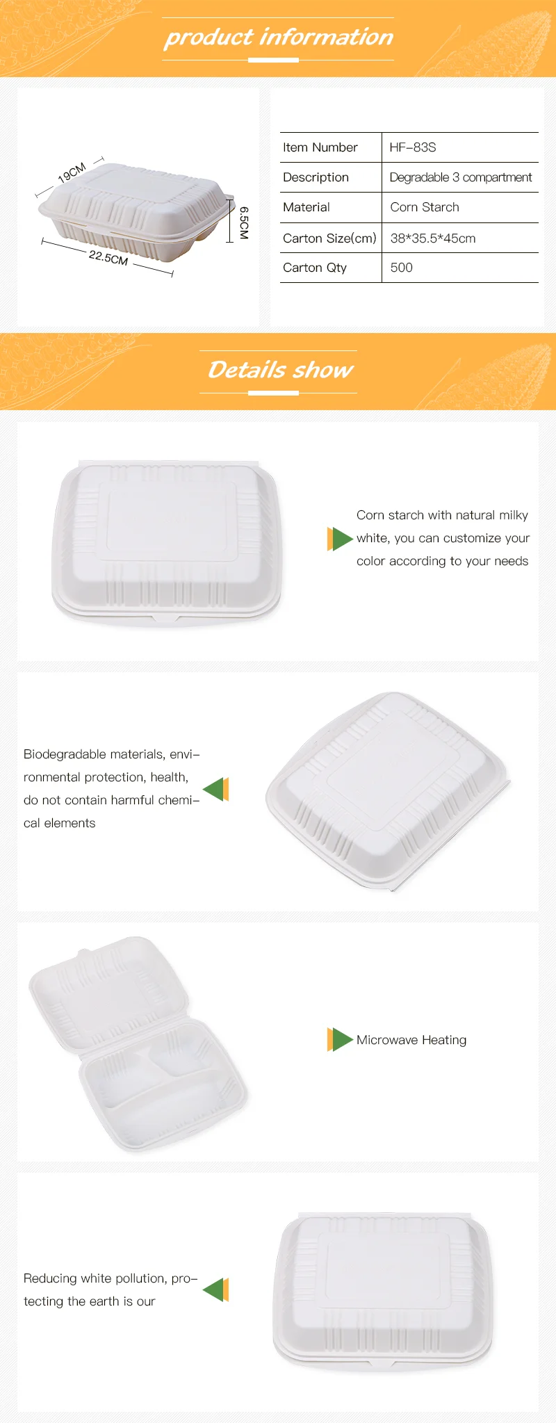 Disposable packaging trays of 3 compartments