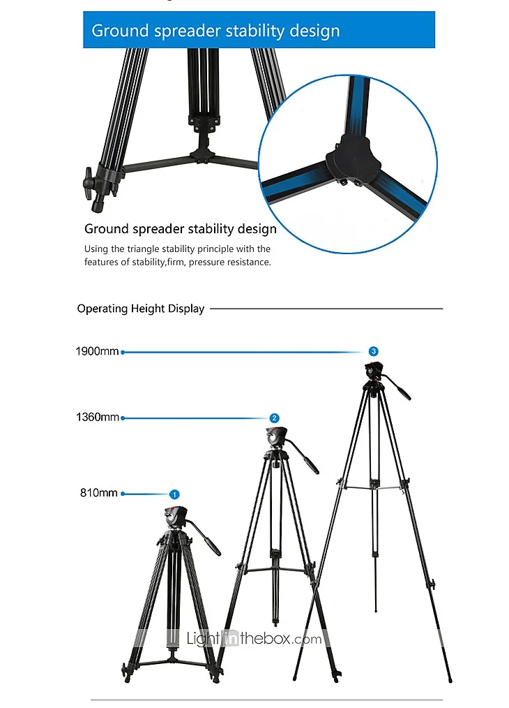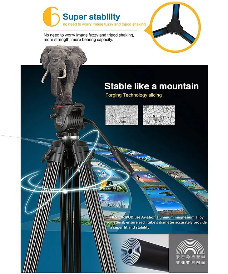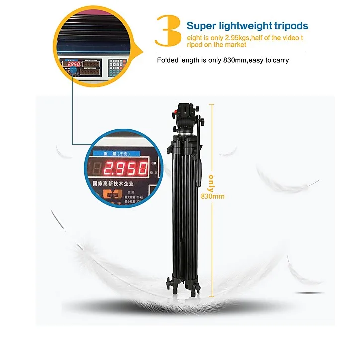 ★Professional Heavy Duty Video Tripod, 65mm Bowl Fluid Drag Head and quick release plate