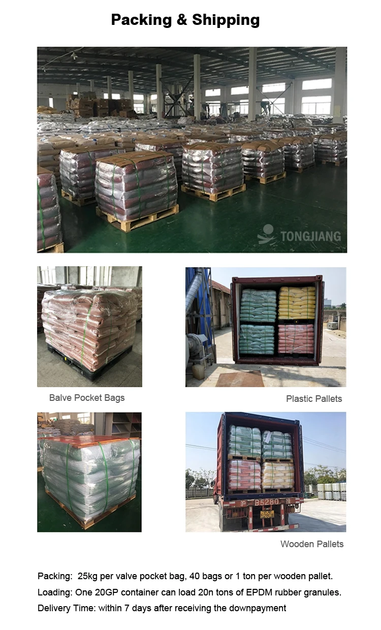 Tongjiang Rubber is top professional manufacturer of EPDM rubber granules, with more than 20 years experiences in production and market. It is the earlist one in China, our nearly 60% of our products are exported to overseas markets. Its variety of vivid colors brings no limits to the imagination.