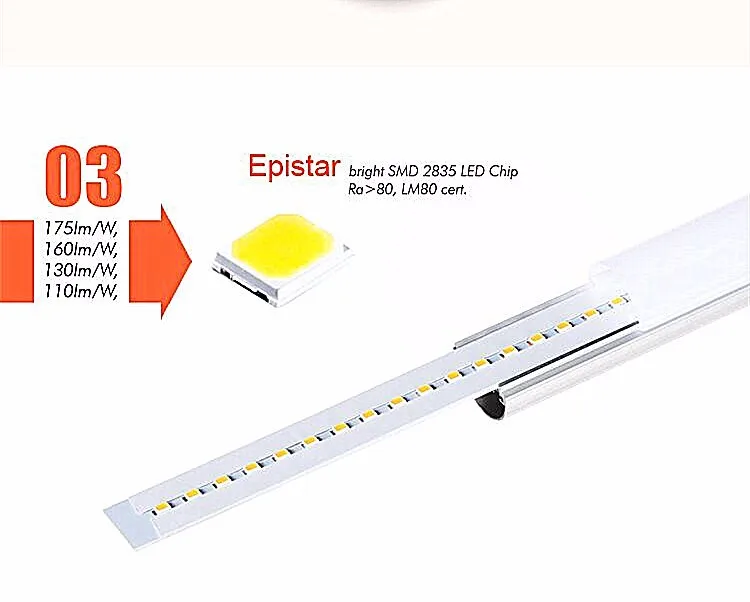 1. Bright SMD 2835 LED Epistar chip. Ra>80 , LM 80 Cer.