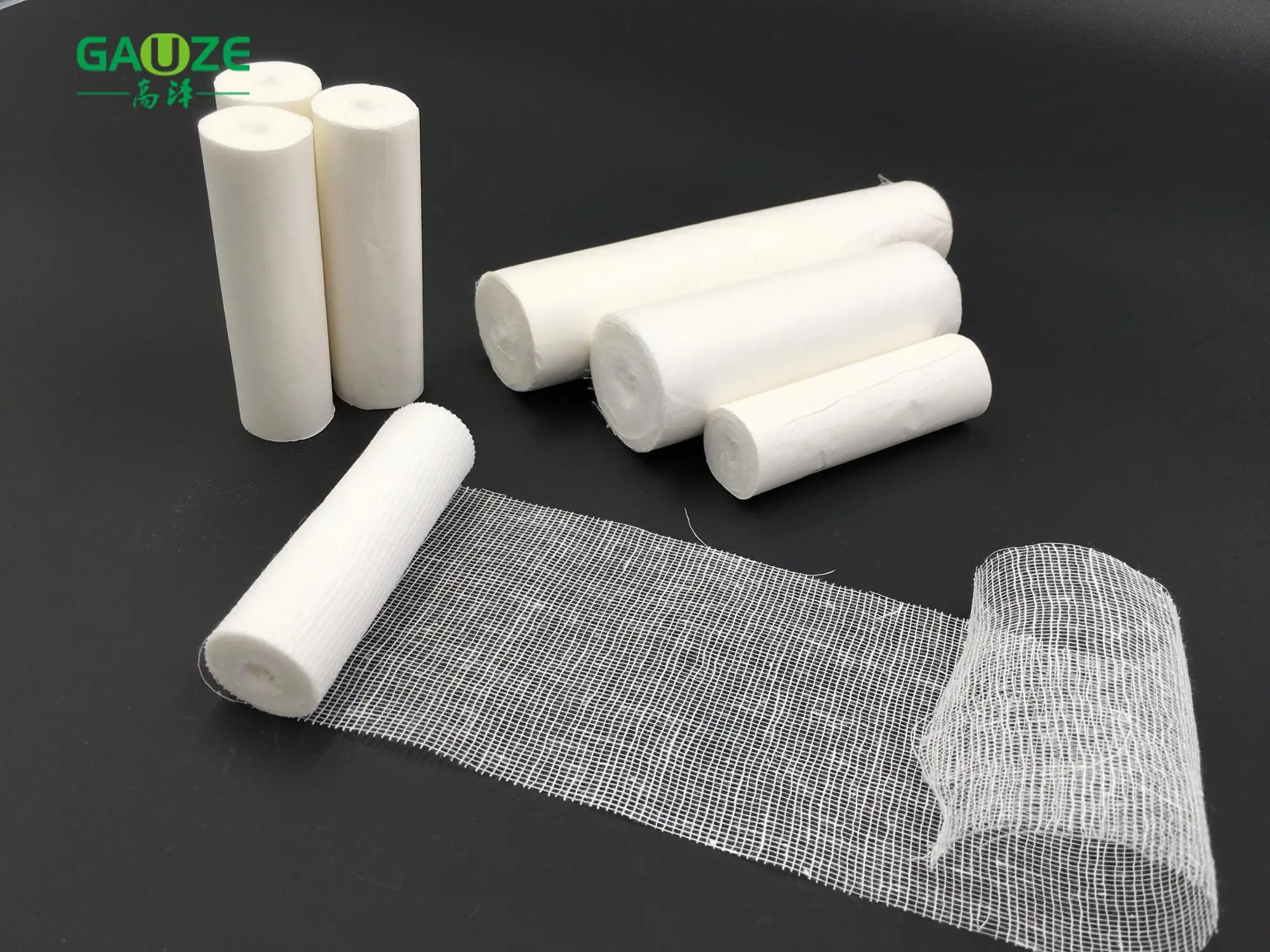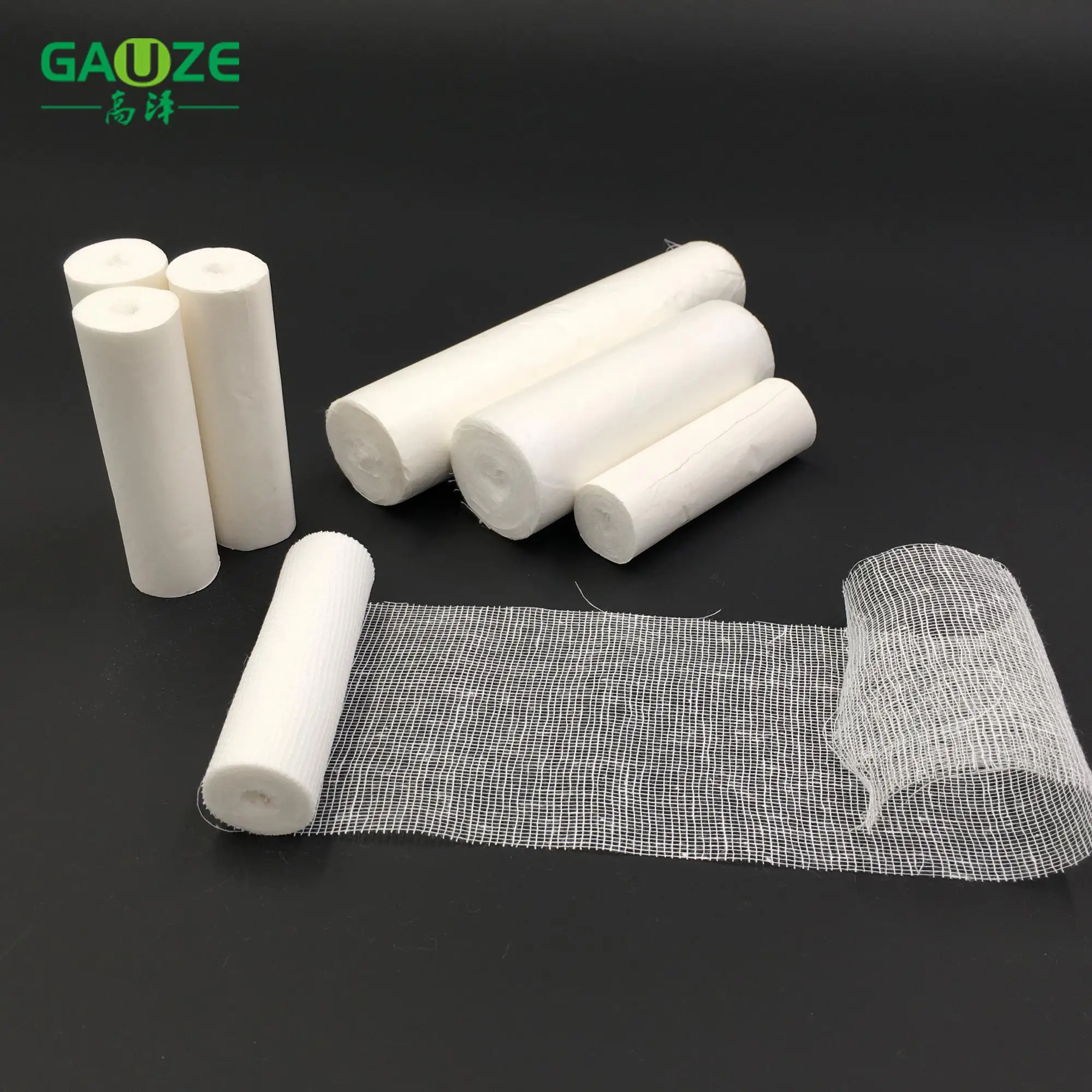 Bandage rolls , pure absorbent cotton gauze rolls, are made of pure 100% cotton yarn, natural raw material which is no impurities, pollution-free. It has good air permeability and high water absorption performance, through high temperature and pressure degreased and bleached,ready-cut.