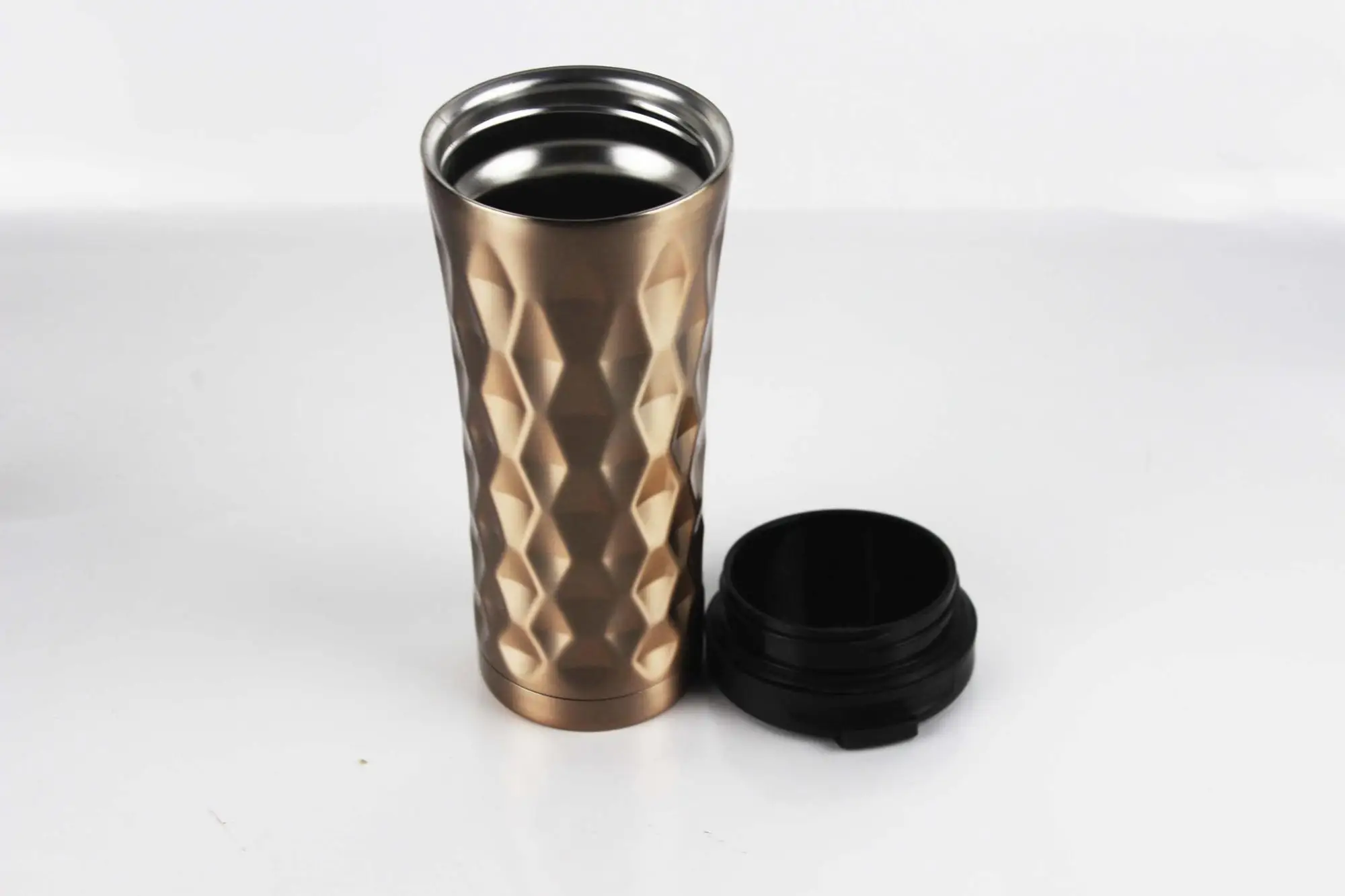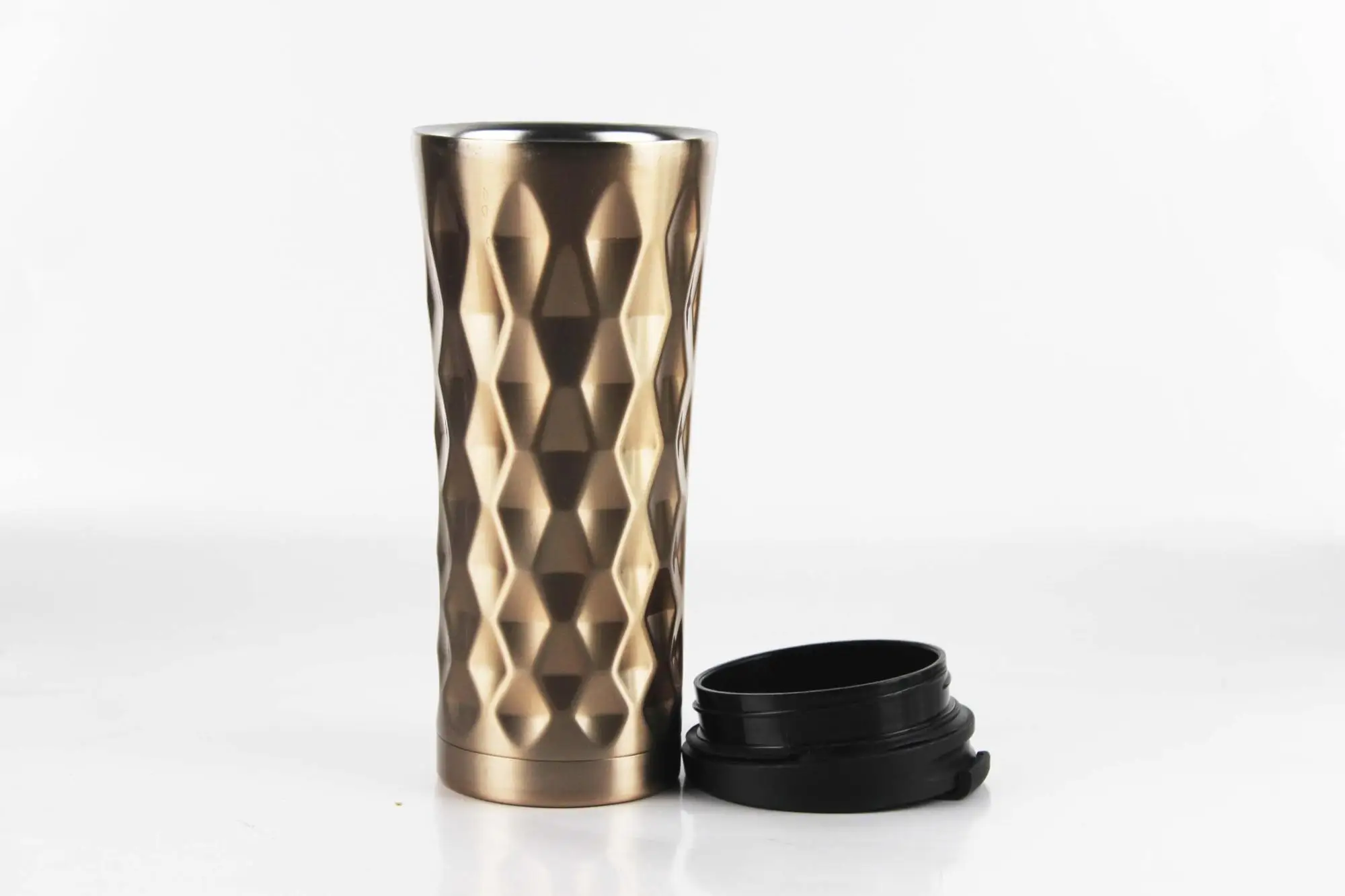 New Type 16oz Rose Gold Copper Plating Coffee Tumbler With Hammered,Insulated Coffee Cup With Flag Lid,Auto Flask Car Mug | ||||||