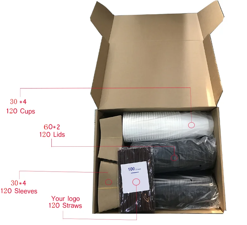 Hot sell 12oz paper coffee cups and sleeves lids 120 set by gold supplier to Amazon