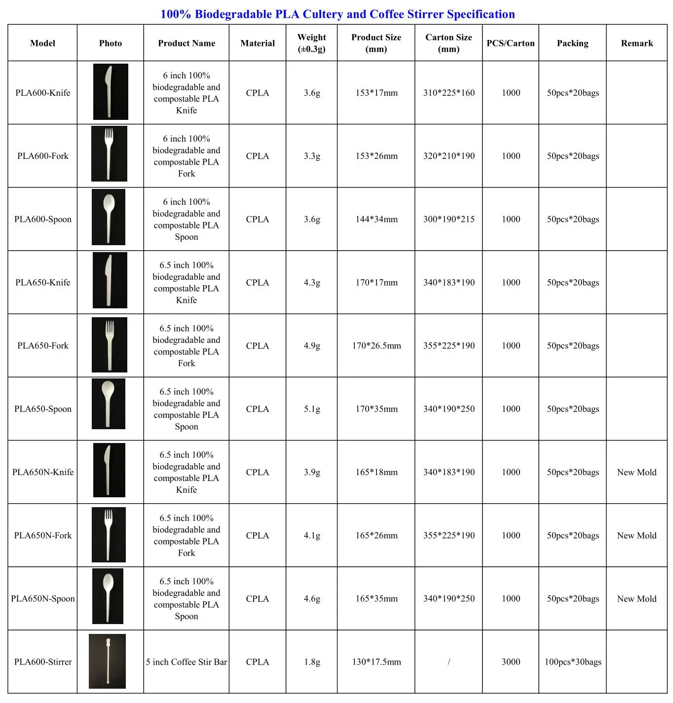 The CPLA is biodegradable and compostable, 100% environmentally friendly