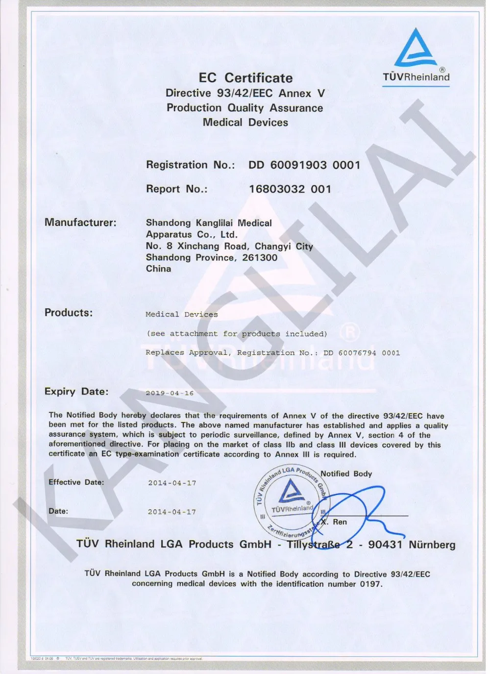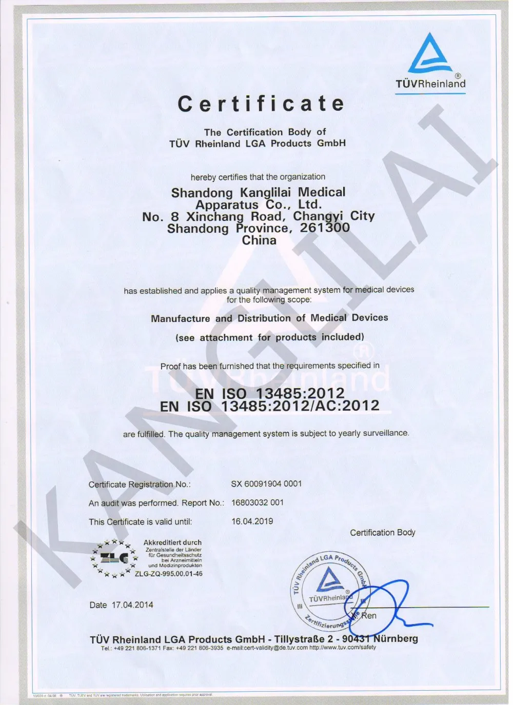 kanglilai in terms of quality control, equipped with perfect testing facilities, all of the testers are passed the national examination organization of training, and have high detection technology, related certificates, one-time in 2009 through the ISO quality system certification and CE product certification, and in 2010, in 2011 passed the European CE certification yearly check. Products in strict accordance with ISO9001 /ISO13485 corporation standard practice the "three inspection system".
