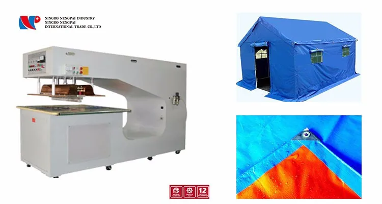 High frequency (HF) welding machine is designed specifically for production of small and large format tensile,structures,membranes,tarpaulin ,oil booms ,truck covers ,swimming pool liners & covers ,airline hangars ,large billboards ,fast doors, side curtains, etc. This basic design machine can be fitted with special impulse electrode for welding non-HF weldable fabrics made of PE and PP, as well as FlexEL 'soft' multilayer welding electrode and curved