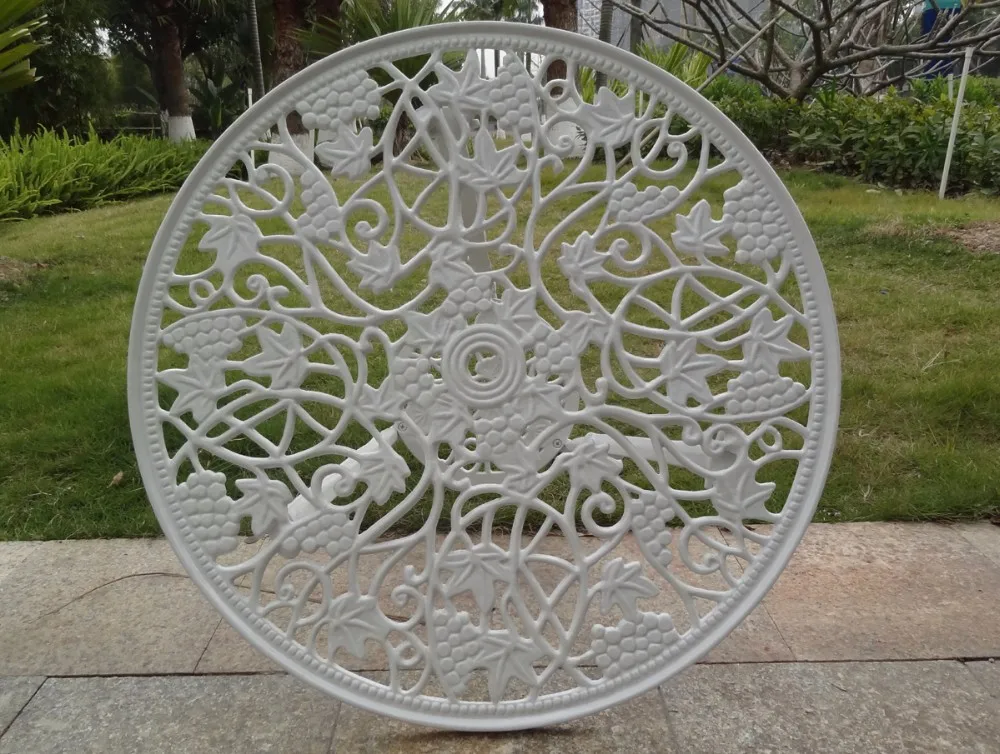 4: Cast aluminum table top , and optional marble table top.