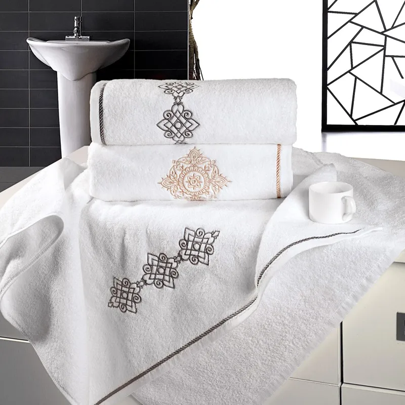 16S Cotton Luxury Hotel Home Wedding Used Embroidery Towel Face Cloth Hand Towel Bath Towel Set