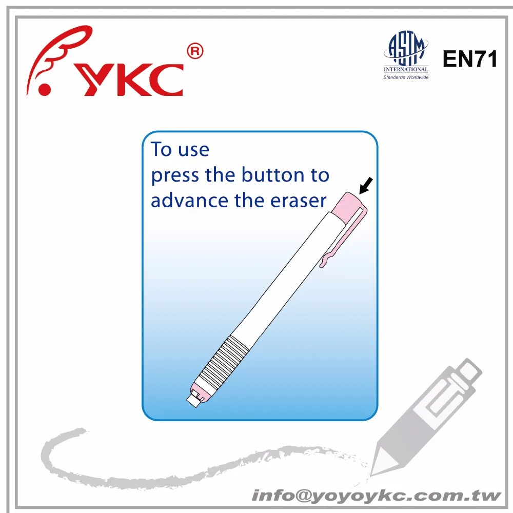 Dimension, softness and erasability were checked in every batch to insure the quality conform to Industrial Standard.