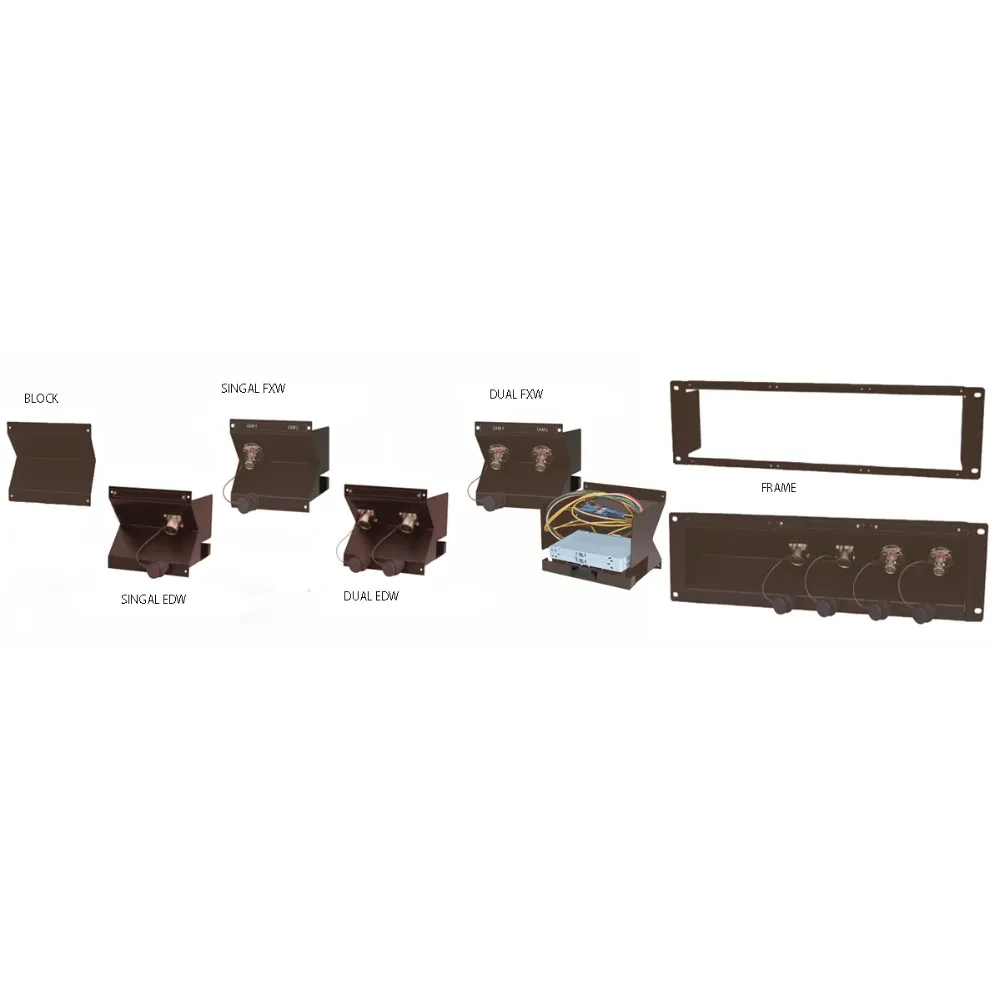 Used in conjunction with the DVS6208-1 camera cable pre-embedded frame, each 1/3 frame width. It includes two FXW camera standard cable holders and splice trays that can be terminated with two pre-embedded camera cables..