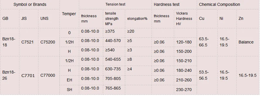 Copper-nickel-zinc alloy strip is widely used in antenna, cellphone shielding case,crystal resonator shell, silverware, jewelry, glasses, medical apparatus and instruments, zipper and keys’ industry.