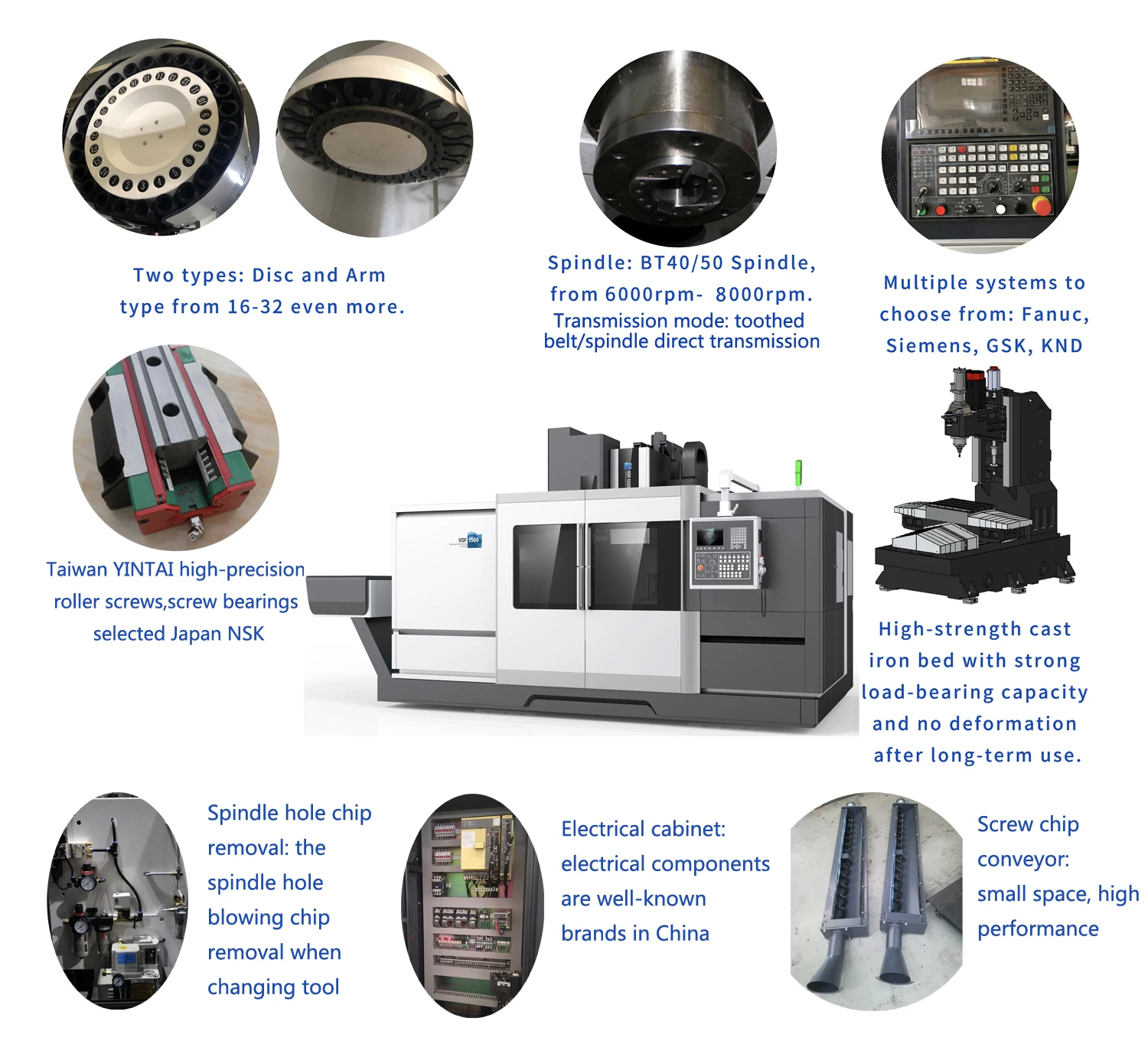 Spindle speed range (r/min) | 8000 | 6000 | 6000 | 6000 | |||