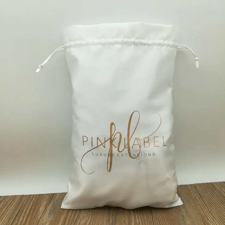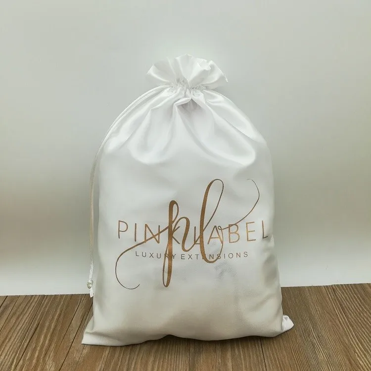 Custom White Luxury Hair Extension Silk Satin Bag With Logo