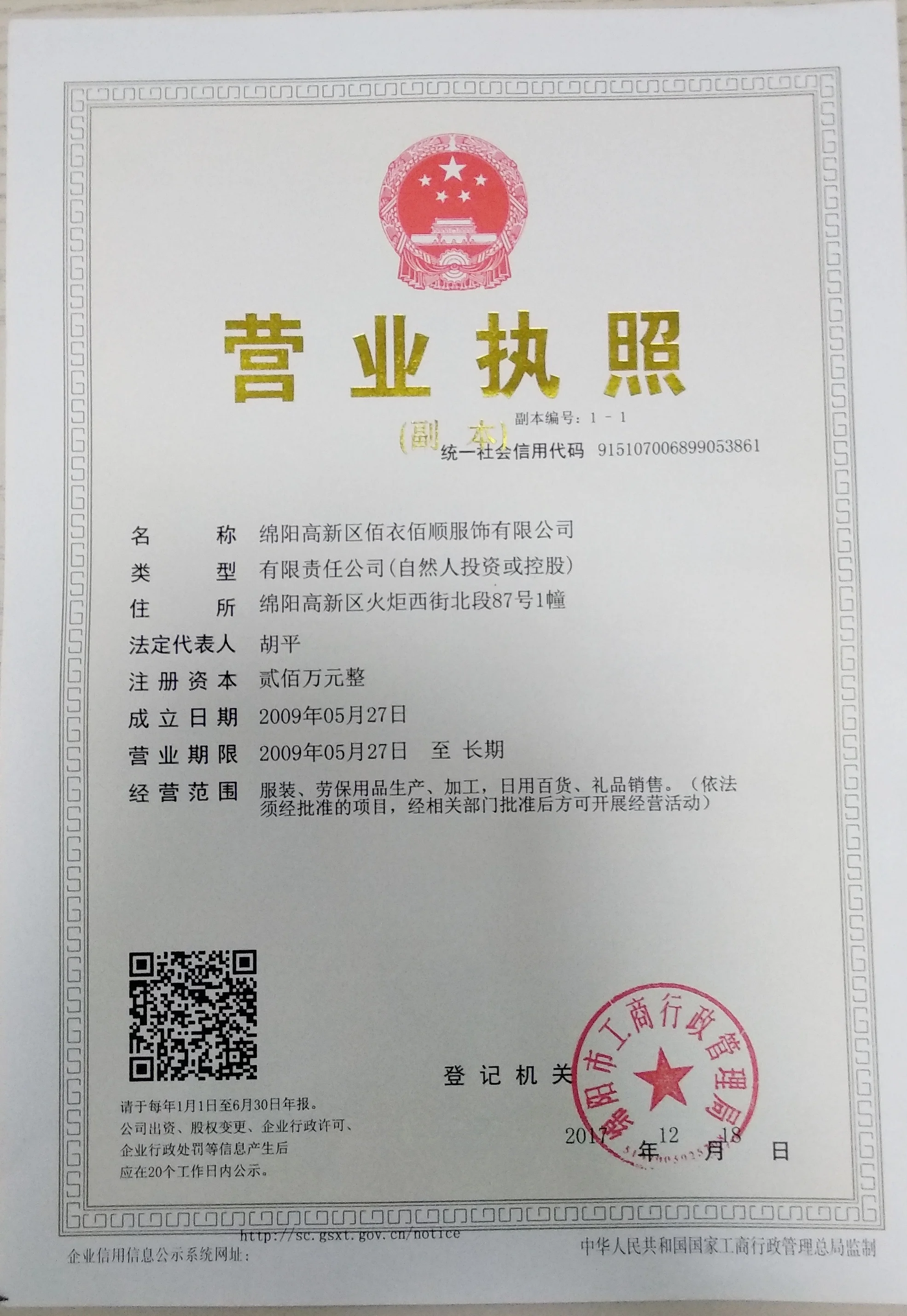 MianYang Hi-Tech Zone Baiyibaishun Clothing Co., Ltd.