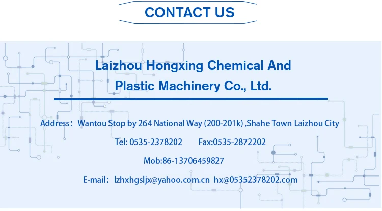 Our factory is located in Yantai City, Shandong Province, Shahe Town, Laizhou City Bayou Hongxing Chemical Plastic Machinery Co., Ltd.