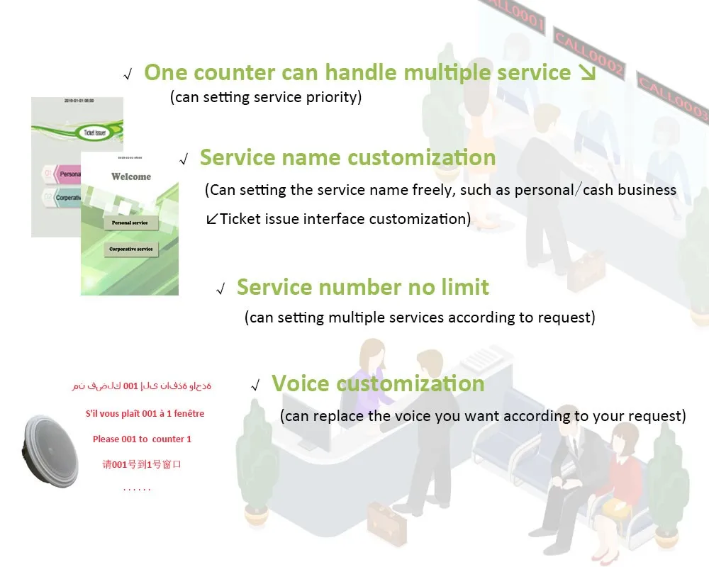 Queue system token machine features