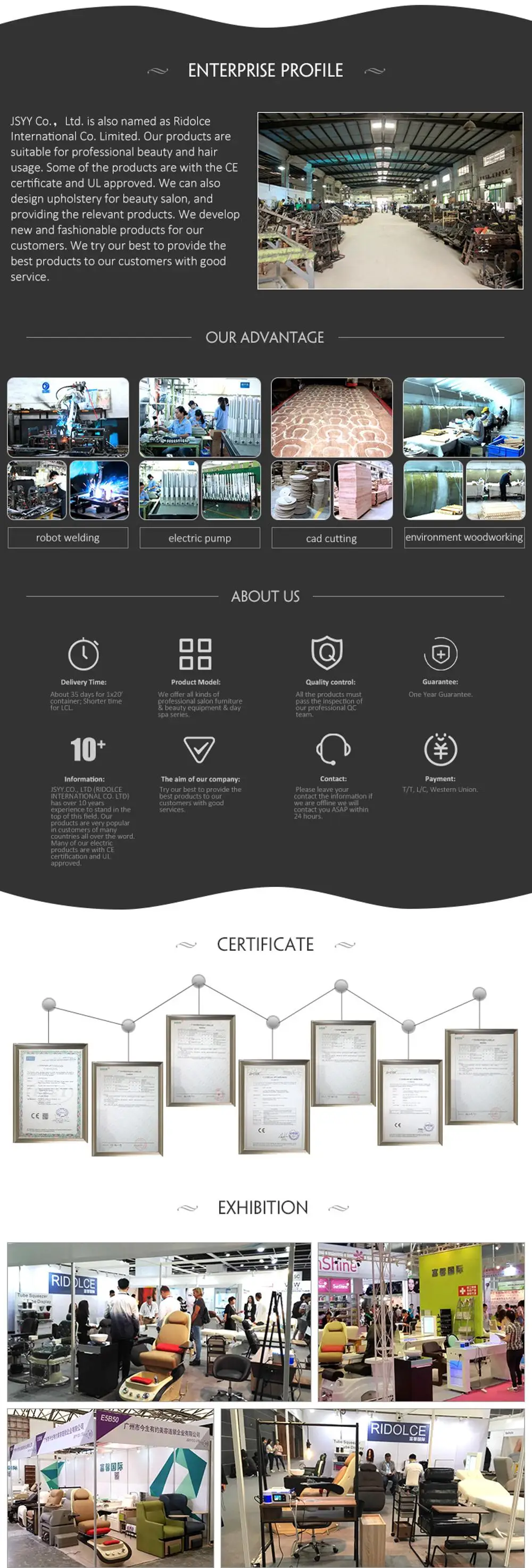 | Information: | JSYY.CO., LTD (RIDOLCE INTERNATIONAL CO. LTD) has over 10 years experience to stand in the top of this field. Our products are very popular in customers of many countries all over the word. Many of our electric products are with CE certification and UL approved. products to our customers with good services. |