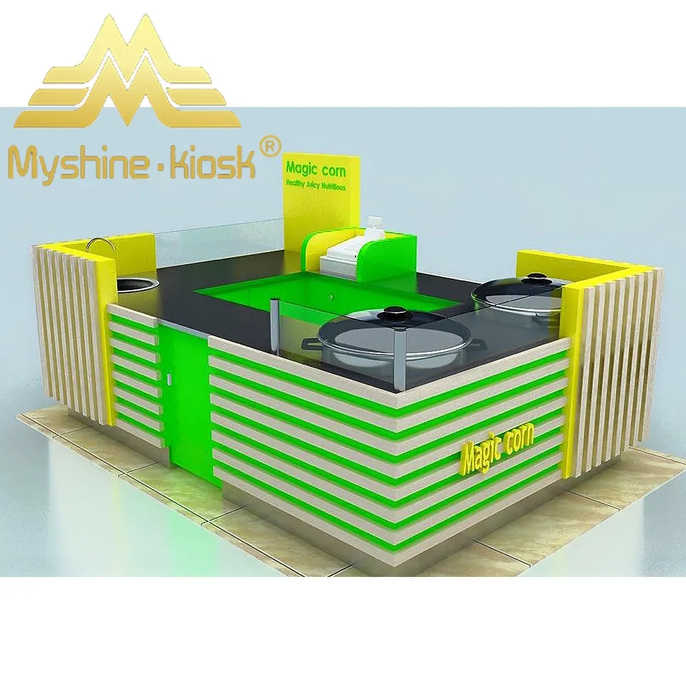 This food kiosk is an integrated, first class quality station with making and displaying Corn in the shopping center.