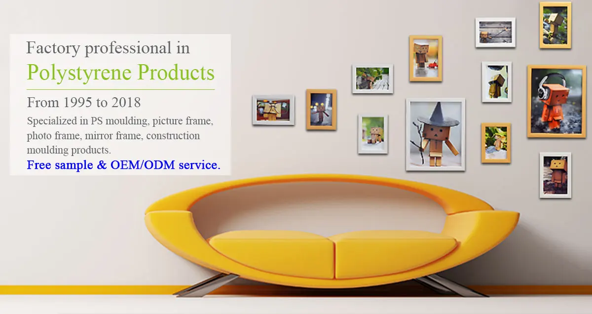 1.Our factory Specializing in PS frame moulding, photo frame, picture frame, canvas painting, decorative mouldings, skirting board, crown moulding and other interior decoration materials.