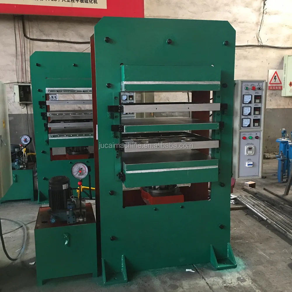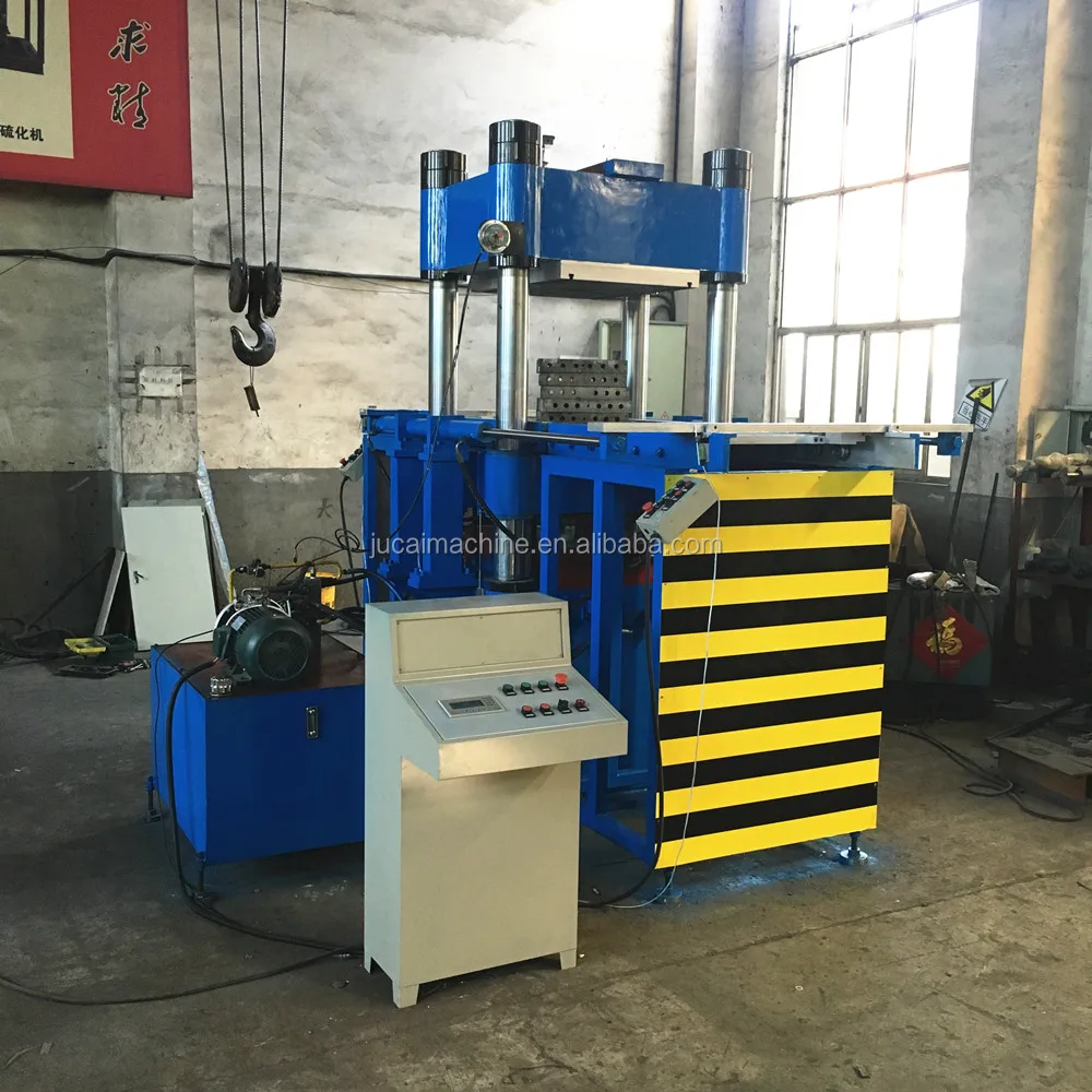 Rubber vulcanizing press machine mainly consists of cylinder , heating plate , piston , electrical cabinet , hydraulic station , etc . It is widely used to vulcanizing different types of rubber and plastic products