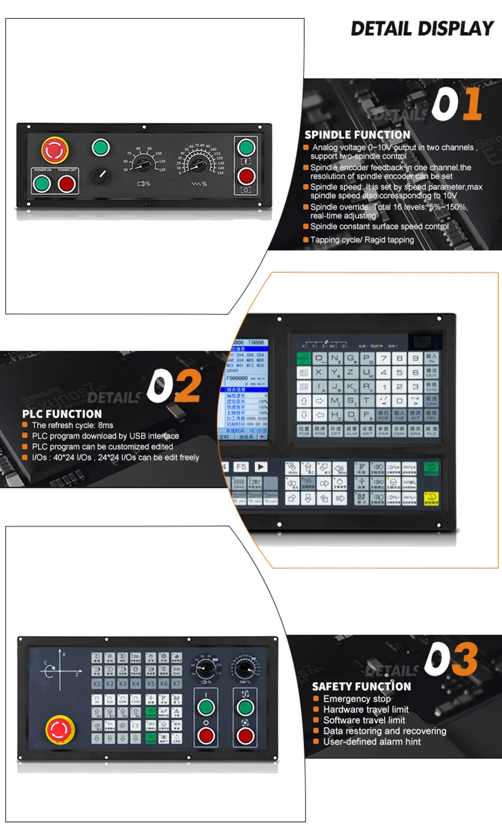 Compensation function | knife compensation, between compensation, screw compensation, radius compensation |
