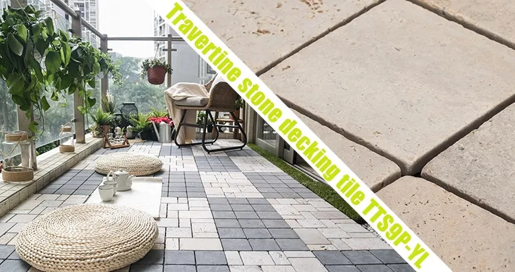 Travertine stone deck tile is convenient DIY tile. Anti-slip, weather resistant, durable and stable, no need any maintenance. Travertine stone deck tiles floor are ideal choice for exterior like garden, porch, hotel, balcony, rooftops, gazebo, etc.