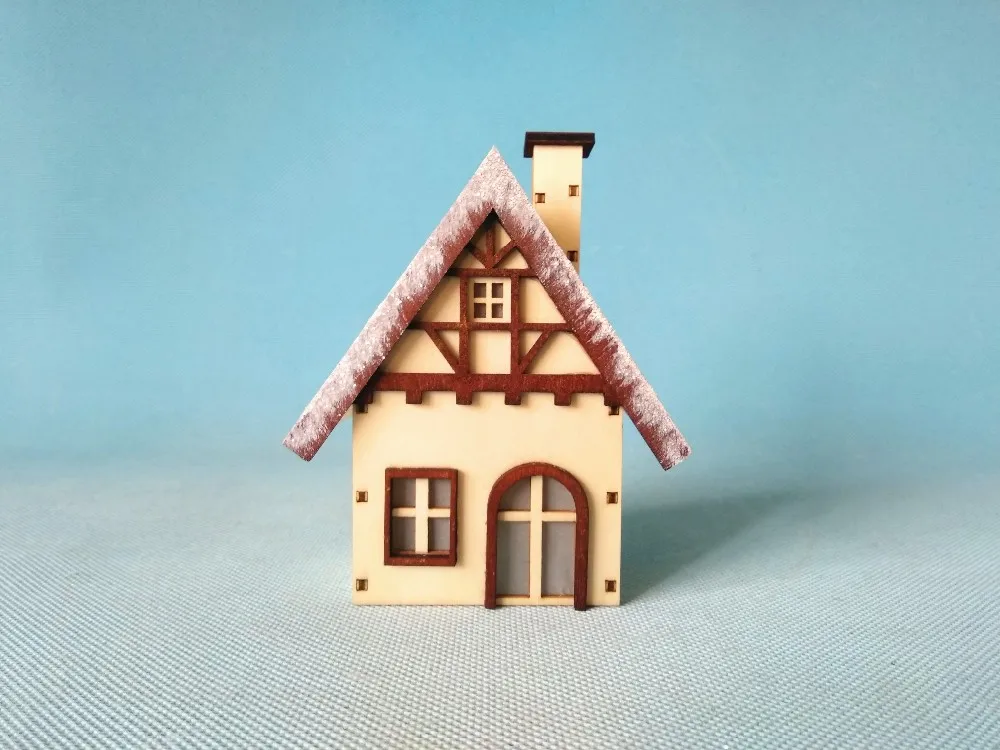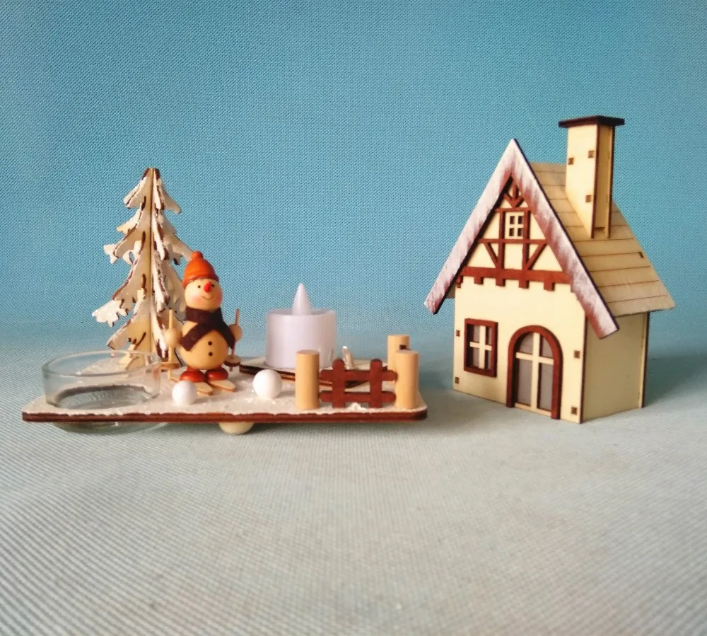 Wooden ski snowman German Christmas incense smoker village house with led light for one tea candle