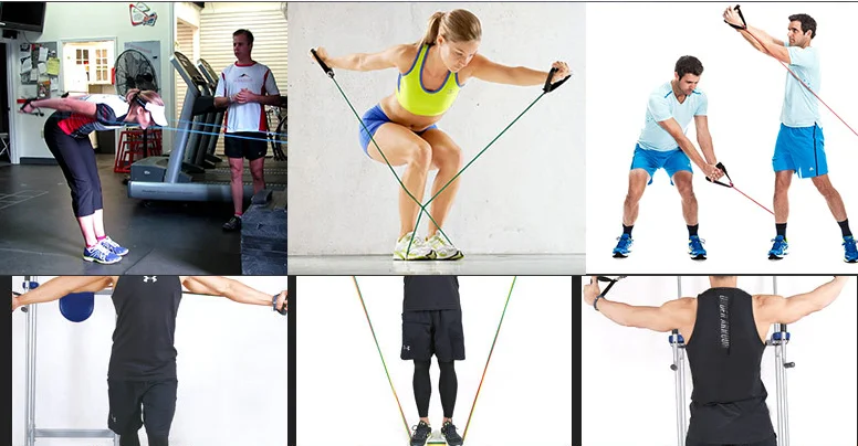 11 Pieces Fitness Latex Resistance Tube Bands Set