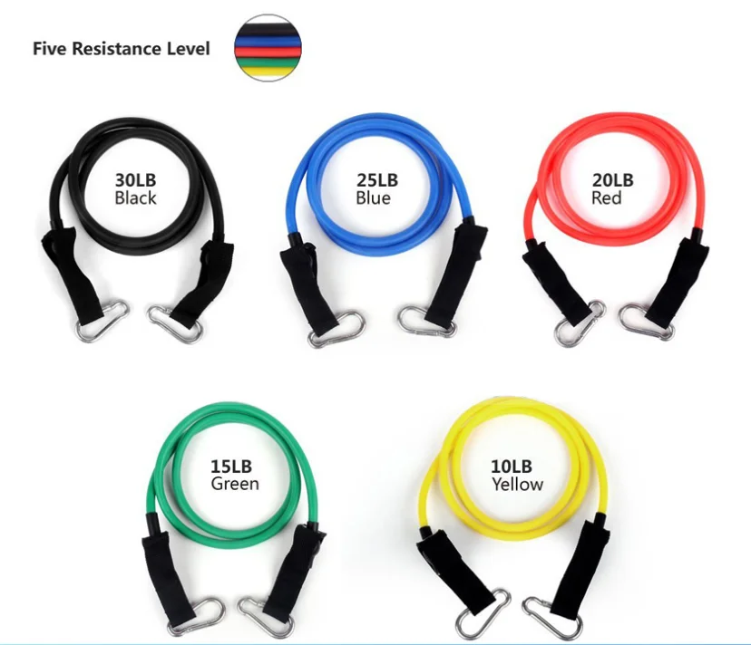 Include | 5 Exercise Tube Bands, 2 handles, 2 Ankle Straps, 1 Door Anchor , 1 Carry Bag |