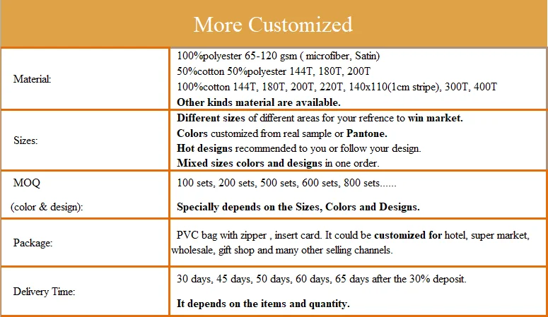 | Size: | Twin, Full, Queen and King, detailed sizes could be customized |