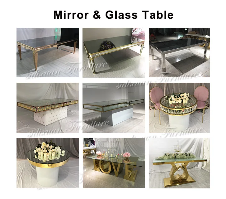 Royal luxury oval round mirrored glass banquet dining table for wedding