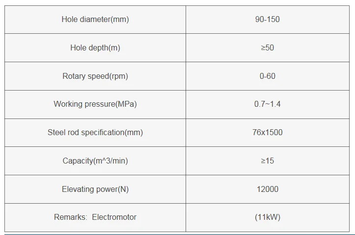 Specification of KQD series down the hole drilling machine