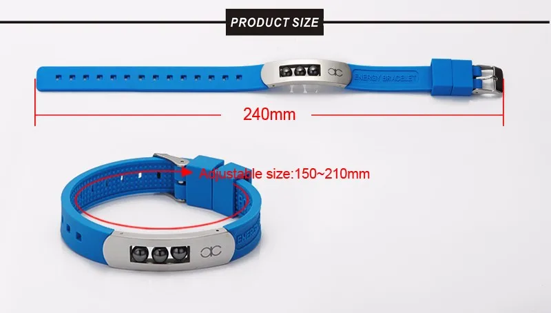 316L Stainless Steel Metal Clasp Negative Ion Silicone Adjustable Wristband