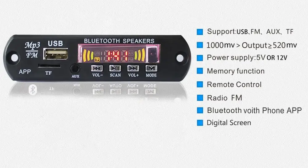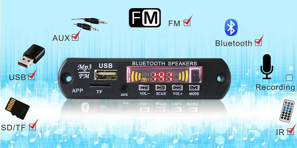 Title: bt usb sd card fm module mp3 player circuit board With APP