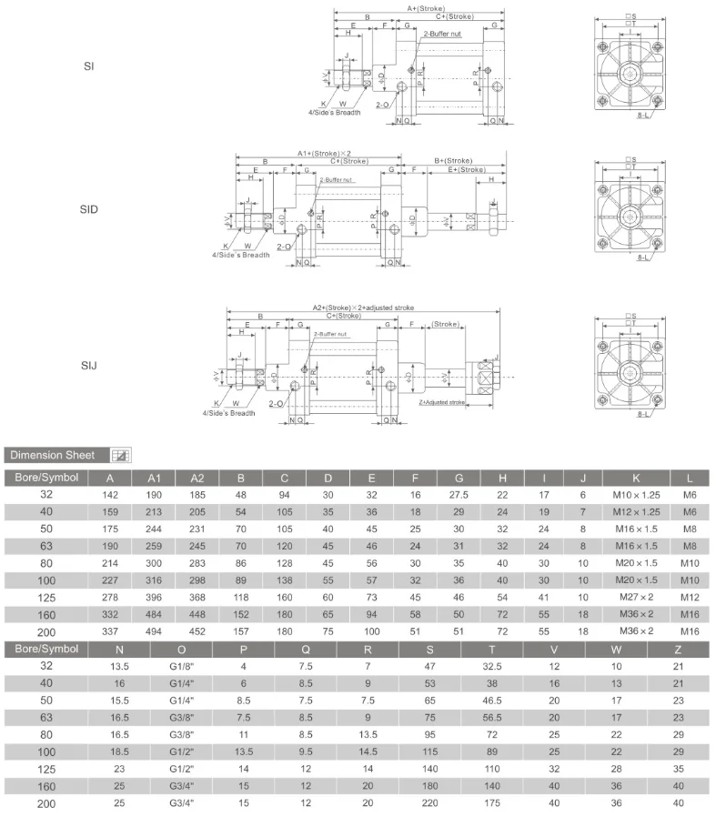 | Bore (mm) | 32/40/50/63/80/100/125/160/200 |