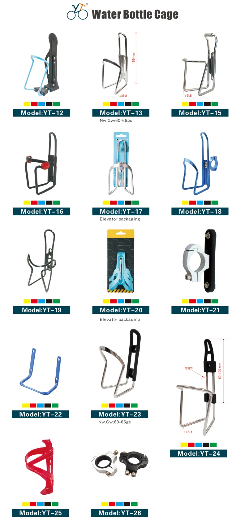 Product name | YT Wholesale MTB Road bike customized adjustable aluminum bicycle cycling holder water bottle cage | ||||||