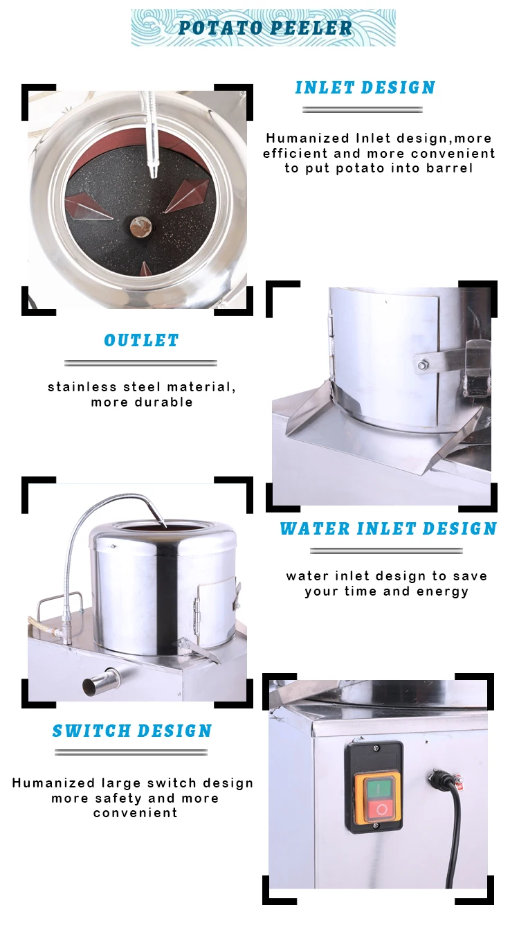 supply water intermittently 3. switch off and peeled potatoes can be out from discharge hole