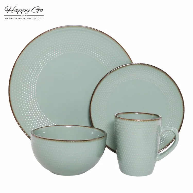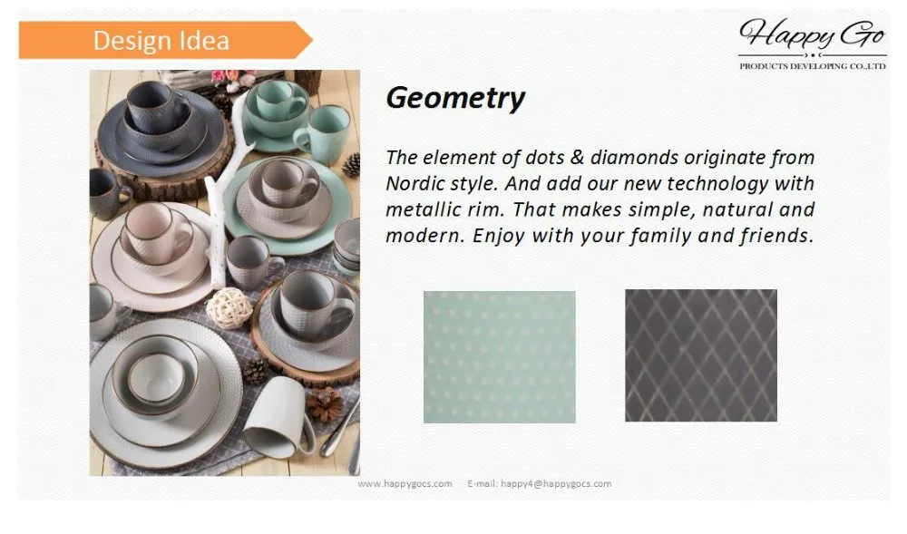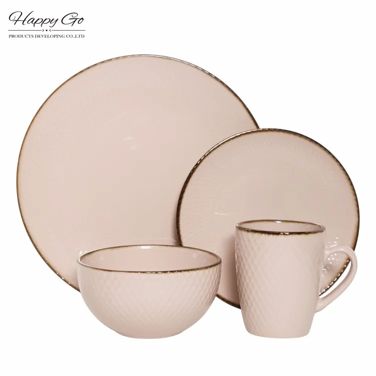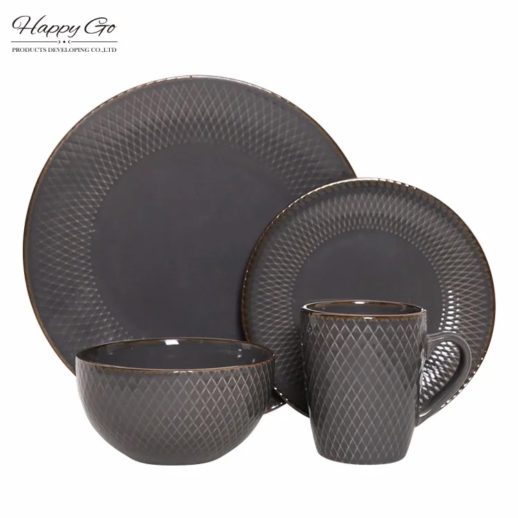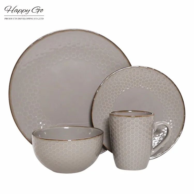 Geometry collection stoneware tabletop set with metallic rim glaze Nordic style modern embossed ceramic dinnerware